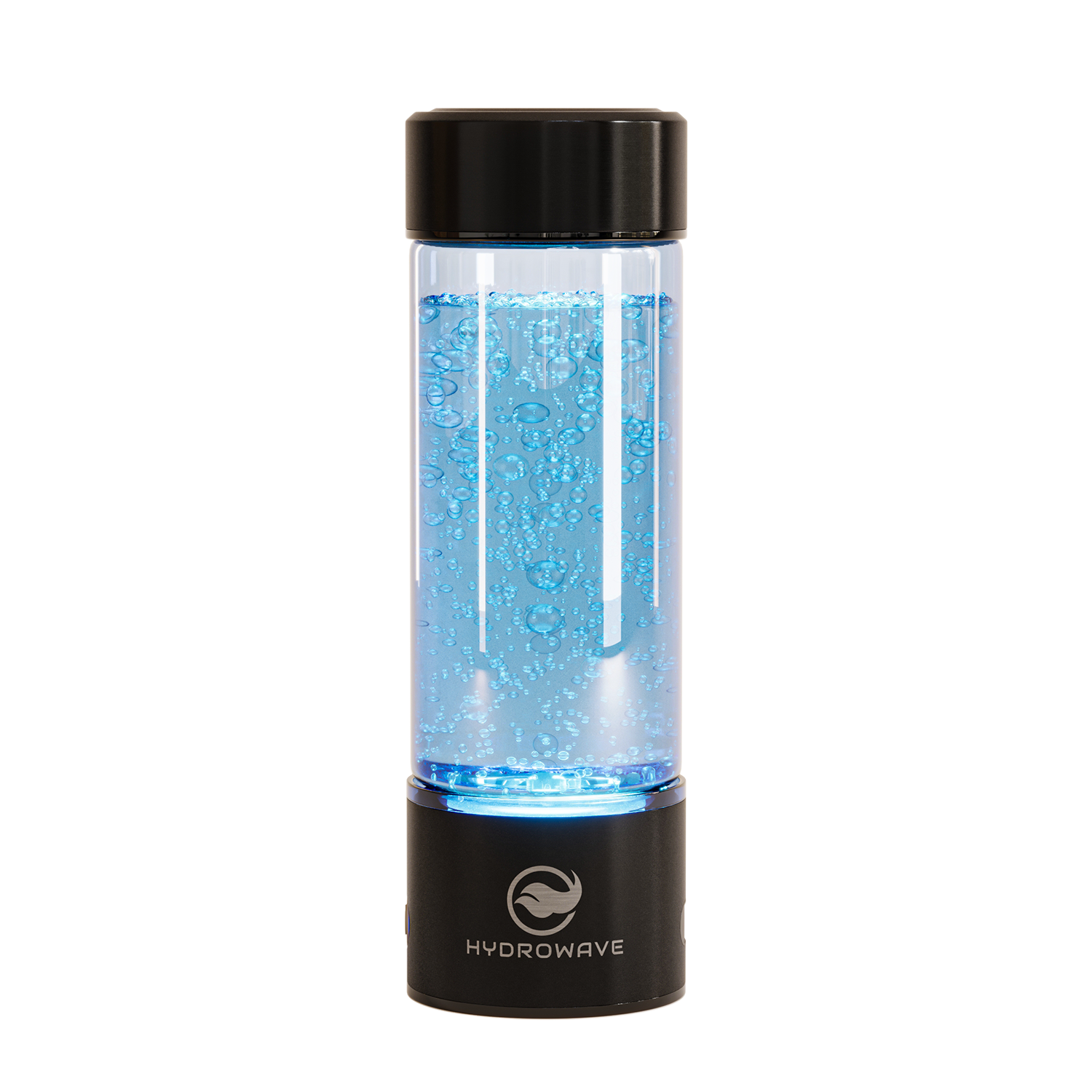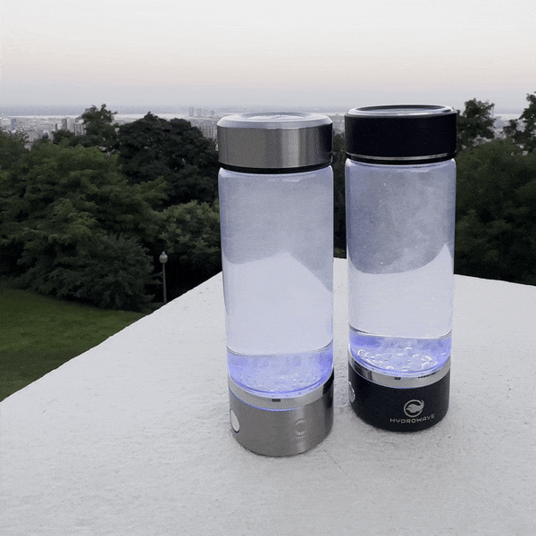Turn on your HydroBottle™ and watch hydrogen bubbles rise in the blue light!